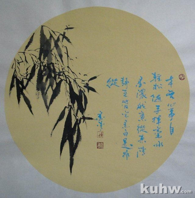 画雨竹枝略弯,叶下垂偏一边。“个”字“介”字相互破,各种分字画其间。行笔提按需求稳,出锋必须要果断。有主有宾分成组,整体还需连成片。密处求疏疏处密,最忌堆砌和散乱。画竹关键在组合,功夫都在笔墨间。