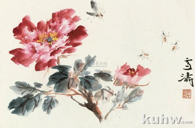 花卉点缀蜂,需要画得精。不仅形对比,静中还有动。双翅墨要淡,用笔也较轻。六足有长短,不可都平行。头胸可断开,为了求生动。虽然形体小,画意也要浓。向背有呼应,活力在画中。