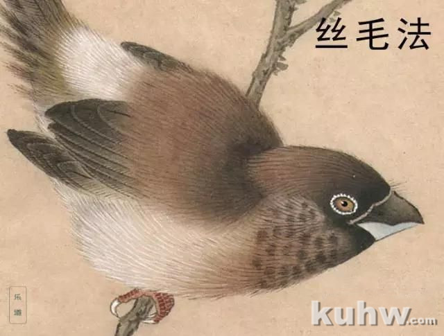 如本图所示麻雀的羽毛部分即为丝毛法为之,也称“单笔丝毛法”。