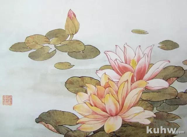 花蕊:渍粉黄,用淡花青在空白处染水。