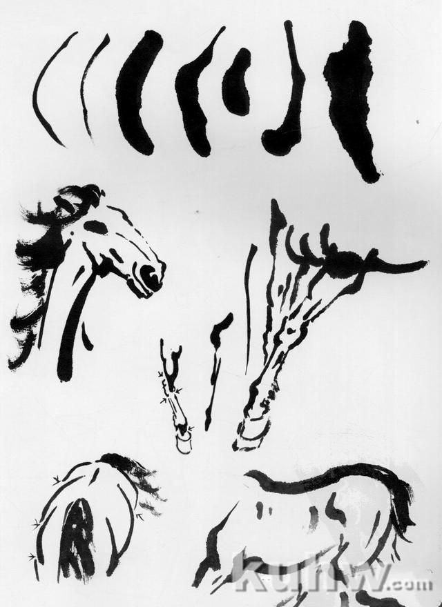 蹄子是马体非常重要的部位,类似人的手足,一幅马作的成功与否,与蹄子的质量高低有直接的联系,严谨的结构,纯熟的笔法,鲜活的墨色是必备的三要素。徐悲鸿由衷地感慨马蹄“比女人的高跟鞋还难画”。