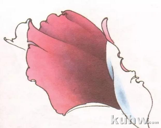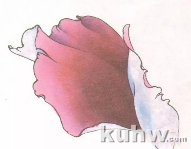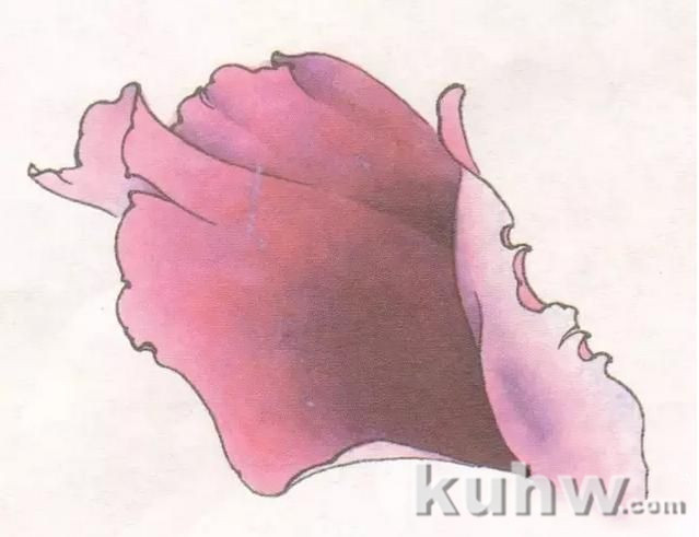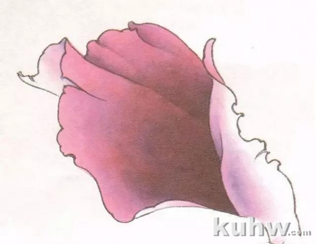 3.用洋红色分染正瓣花,直到有绒感为止。纸的反面平涂浅青莲色(水粉色)。