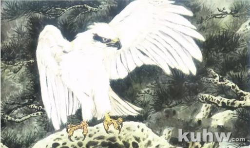 画白鹰在技法处理上,宜用反衬法效果较好。浓密的松,将白鹰衬托得更为醒目,同时也取得疏密对比的效果。↓↓↓