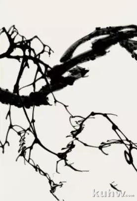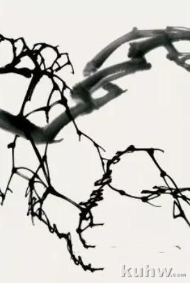 第二步:在为主的细藤画完后,再用淡墨穿插少量粗藤,粗细藤之间应有断连和掩映关系。