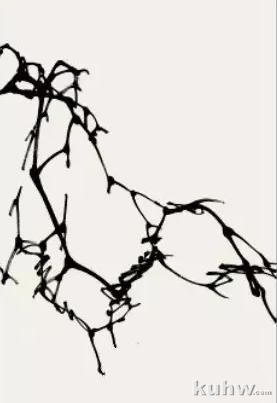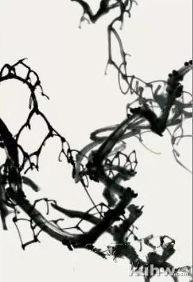 第四步:最后再以稍淡的墨色作枝蔓穿插于后,以表现前后枝藤的空间感,但不宜太多。