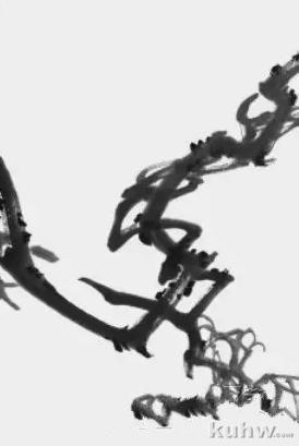 第三步:再用枯笔对粗藤作加勒,用浓墨在藤上点苔点。