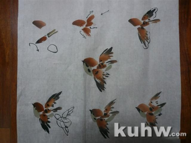 画麻雀与小鸡用笔一样,不同的是飞行和色彩的变化