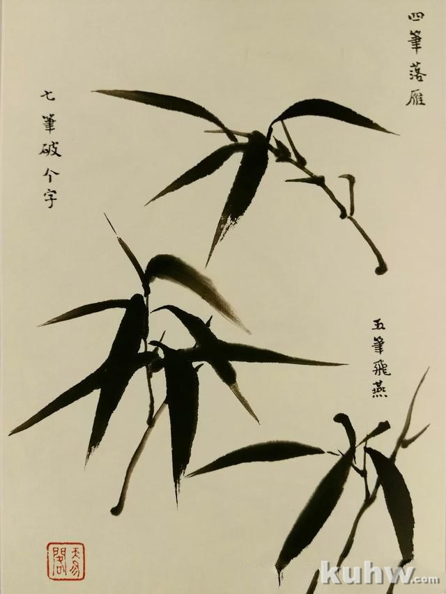 1、【画竹起笔 】起笔藏峰 收笔露峰。画竹起手,先撇竹叶,手腕须有弹力,千万别手指着力。