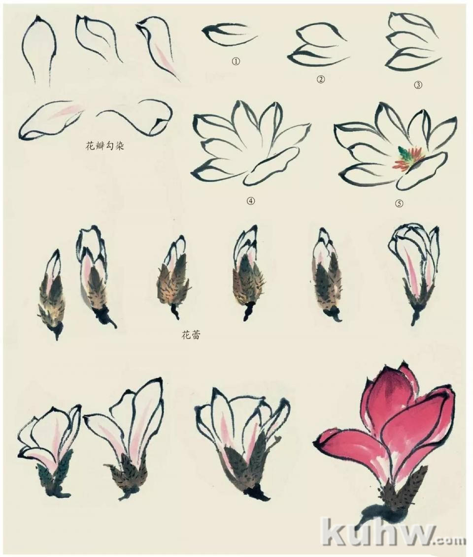 国画教程:杂花画法 作者: 时间:09-11 浏览: 错误报告 玉兰的画法 玉兰花别名白玉兰、望春花,落叶乔木,早春三月开放,花白色,大型、芳香。白花用勾染法(也可用点�法)。用渴笔(含水、墨量少)淡墨有轻重地顿挫勾出花瓣。用白粉罩染花瓣。用赭石加朱�点画花蕊。花萼用汁绿色加赭石色点成,趁未干时点毛刺。 3/4 首页 上一页 下一页 尾页 延伸阅读: 国画写意萱草花画法 萱草花怎么画国画写意金鱼的画法 怎么画金鱼国画如何画猫?国画猫的画法国画水墨虾的画法玉兰花绘画教程 国画玉兰画法国画桃花画法 桃花怎么画国画菊花画法 菊花的基本绘画技法国画写意小麻雀画法(1)国画写意小麻雀画法(2)国画写意小麻雀画法(3) 标签:芍药画法 上一篇:国画写意萱草花画法 萱草花怎么画 下一篇:写意兰花画法 怎么画国画兰花 最新文章推荐 约翰·克里斯蒂安·达尔(Johan Chri 朱利安·杜佩(Julien Dupré)作品-Ha 弗雷德里克·埃德温·丘奇(Frederic 神坂雪佳(Kamisaka Sekka,日本画家) 路易斯-让-弗朗索瓦·拉格尼(Louis- 弗朗索瓦·布歇(François Boucher) 留言与评论(共有 条评论) 验证码:
