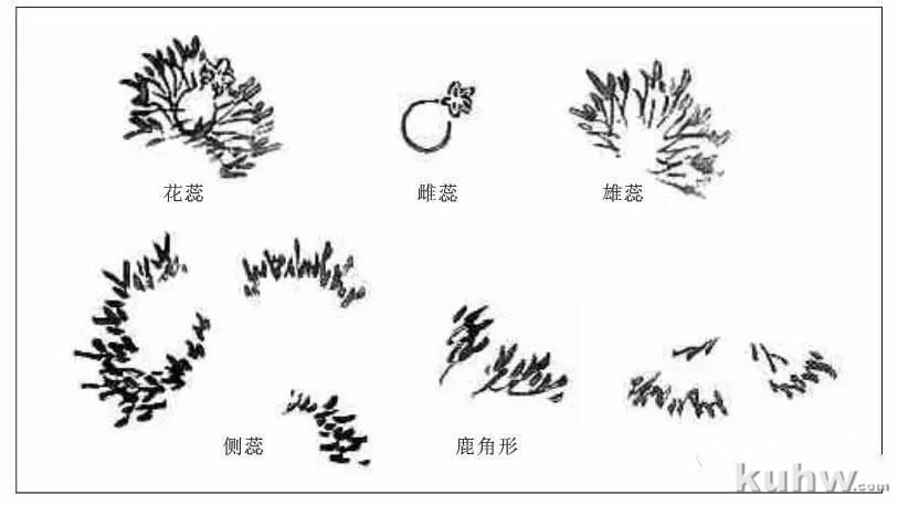 花蕾形与色均与花头对比、映衬。主要是起构图作用均衡,大小、方向、浓淡均以画面构图而定。