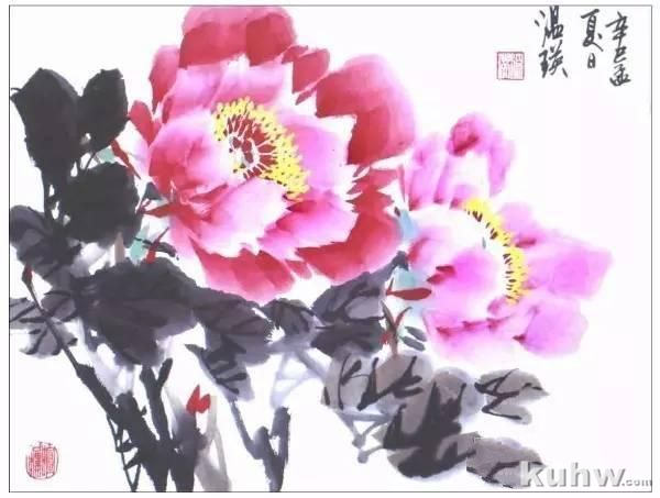 牡丹的教程以前做过很多了,不过,因为大家喜欢,所以,小编还是愿意再分享一个比较详实全面的连载,包括花头的画法,枝叶画法,构图等。素材内容摘录自华龄出版社《写意牡丹画法》,温瑛著。内容仅供参考,如需深入学习,请从正规渠道购买正版图书!
