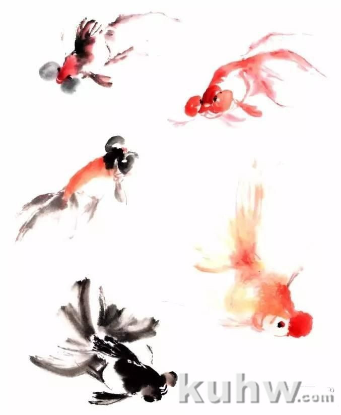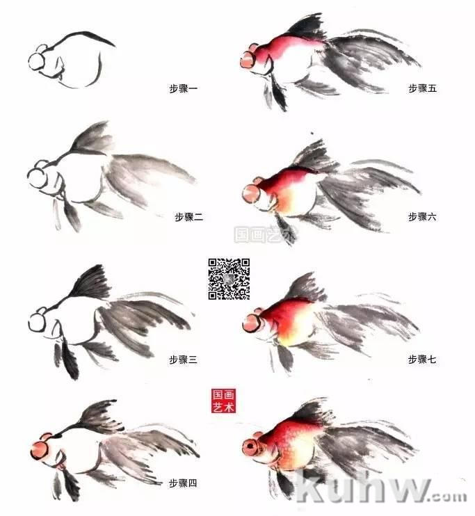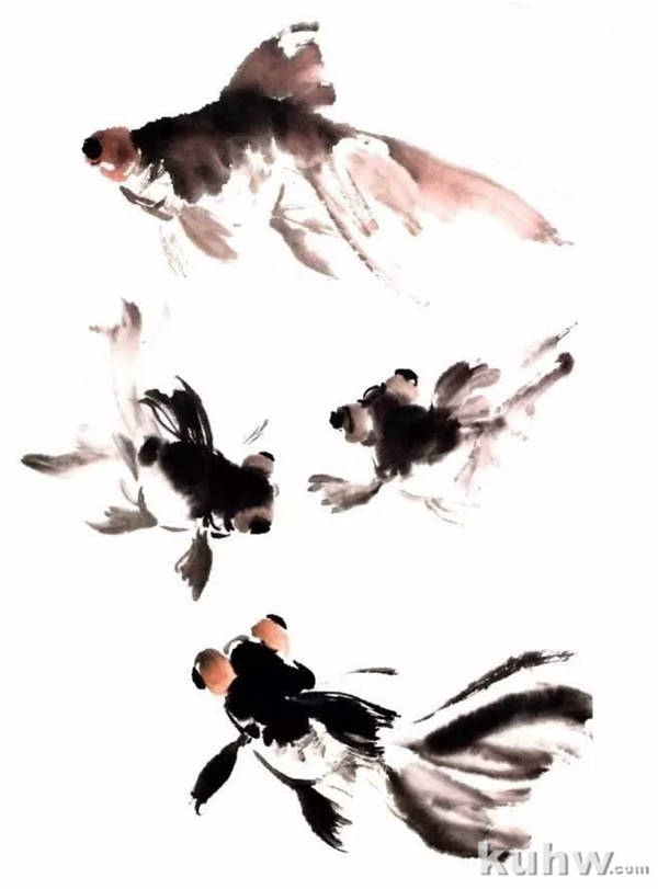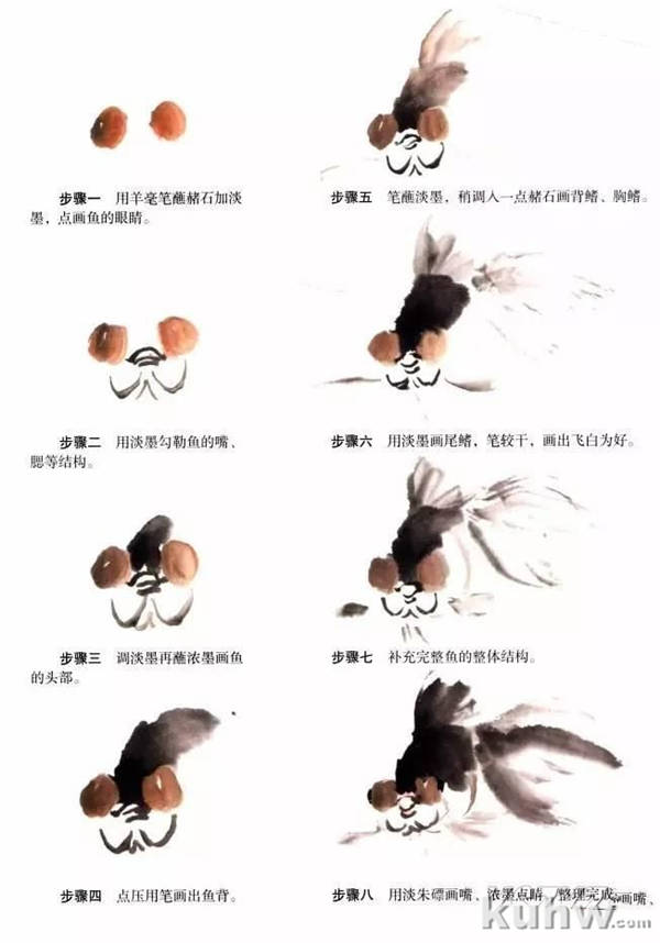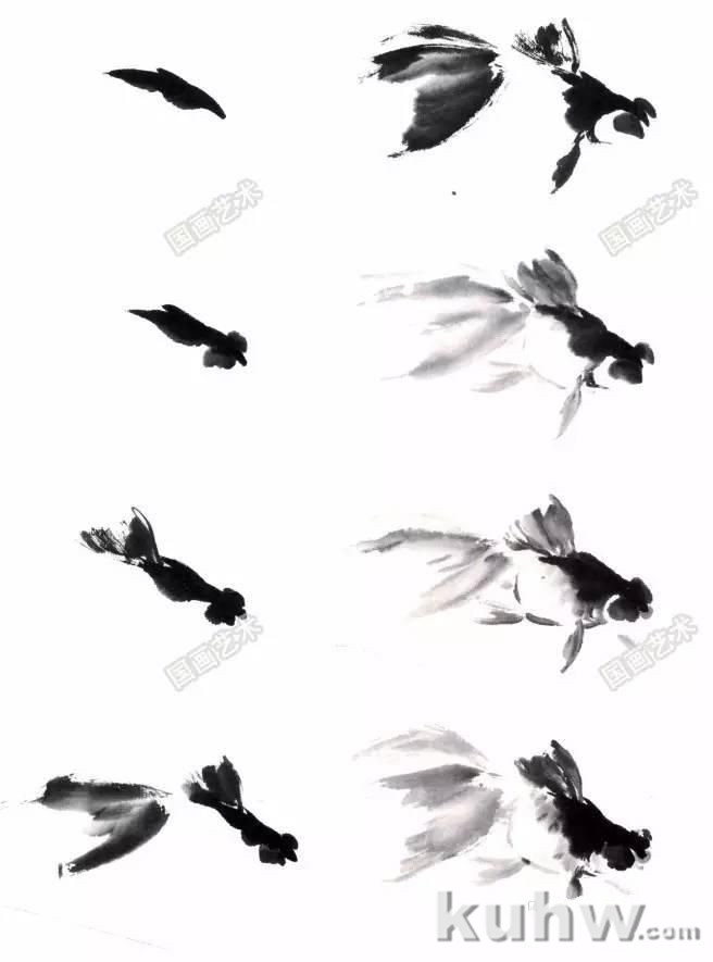 黑色金鱼的画法步骤(没骨法)