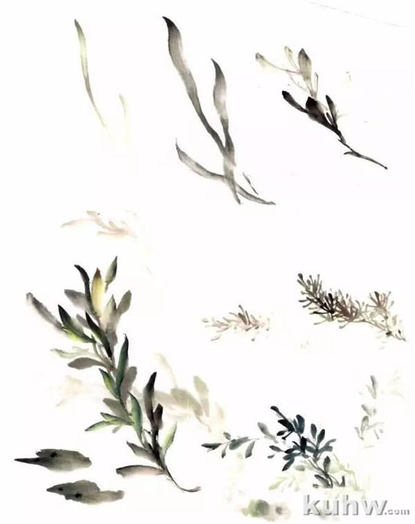 水草的各类很多,有水柳、水松、水苔、浮萍、莲、荷等,有生长在水上面的,有生长在水下的,要画出在水中的感觉。