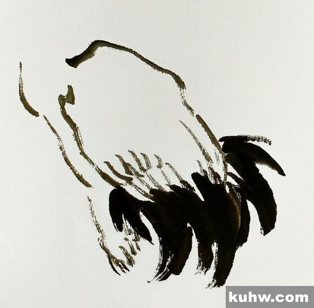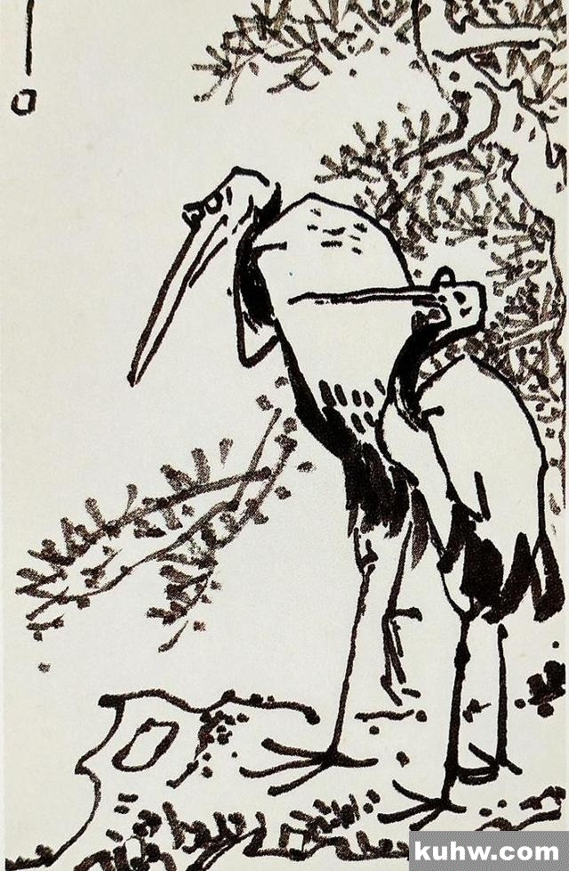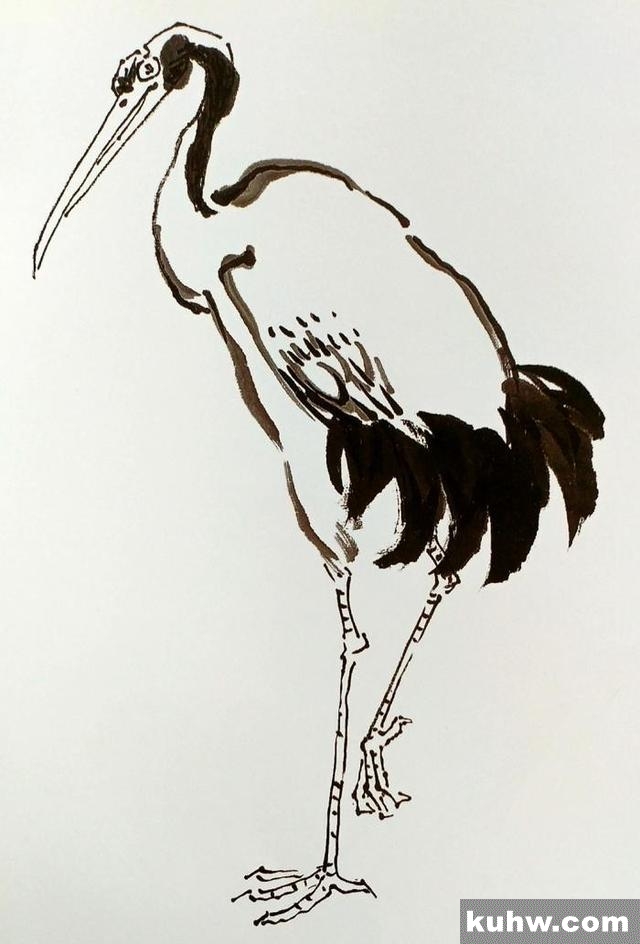 第三步:以细笔蘸浓墨,中锋有顿挫勾鹤的腿爪。