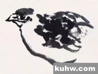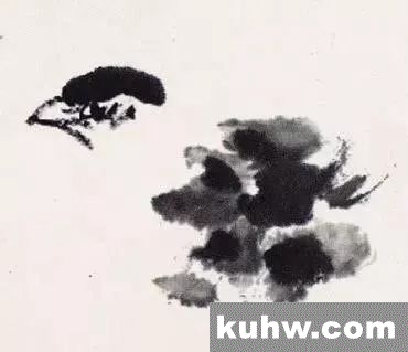 第一步:先用一笔淡墨画头,再用数笔中淡墨画背部,须注意浓淡变化。画背部时须点中带擦,笔与笔之间应留有白眼,以显空灵。