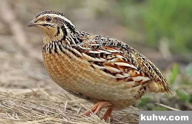 鹌鹑形如竹鸡,体型较小而滚圆,羽色多较暗淡,通常雌雄相差不大。体小褐色带明显的草黄色矛状条纹及不规则斑纹,雄雌两性上体均具红褐色及黑色横纹。雄鸟颏深褐,喉中线向两侧上弯至耳羽,紧贴皮黄色项圈。皮黄色眉纹与褐色头顶及贯眼纹成明显对照。雌鸟亦有相似图纹但对照不甚明显。