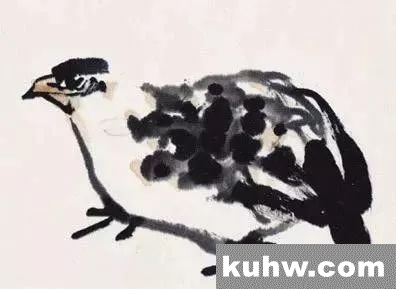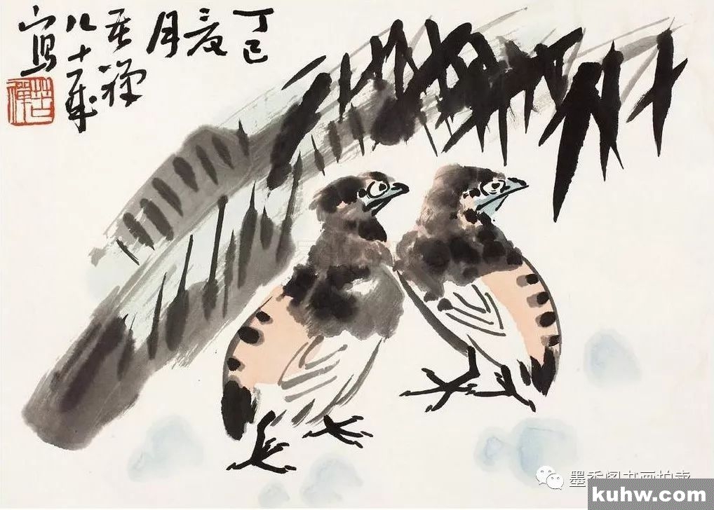 第二步:用浓墨或焦墨勾嘴、点眼,运笔须稳健有力,笔墨的水分掌握应偏干。