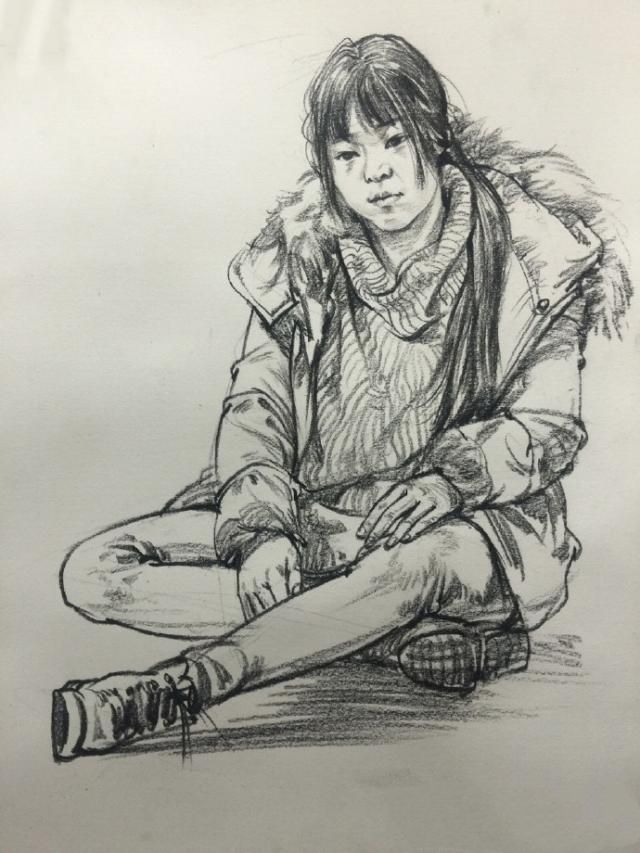速写的目的在于培养正确的观察方法及严格的造型能力。写生者必须具备扎实、熟练的人体解剖知识,这样在写生中才能做到游刃有余,人体的内部结构是没有变化的,变化的只有随着人体运动的动态、衣纹等。因此,线的运用与结构有着密不可分的关系,表现方法要为表现结构服务。