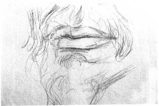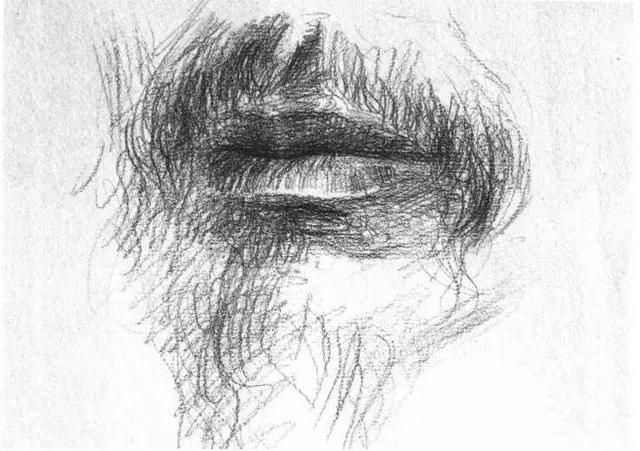 步骤二 大致画出嘴的明暗关系与胡须的基本走向。
