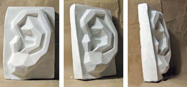 三角窝: 耳朵上部的三角窝多数处于暗部中, 所以在对耳轮上所形成的投影形的起伏变化就要给予高度重视。