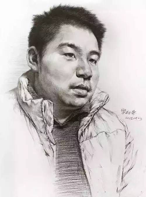我们在作画时,要学会对于画面节奏的整体把握以及绘画语言的表达,在模特形体转折明确的情况下,利用整体大的色块区分头发、脸部、脖子、衣服的明度。这样通过有节奏对比能够产生强烈的视觉效果。