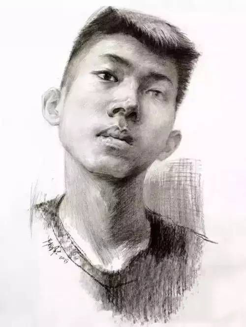 在一幅素描头像中,脸部的五官可谓是视觉中心,最重要也是最具看点的地方。想要在考场短时间内做到非常不错的效果,五官的精细塑造是关键。且通过对五官的精细对比脸部塑造的放松会使画面具有独特的味道,记住脸部塑造一定要干练,尤其是青年模特。