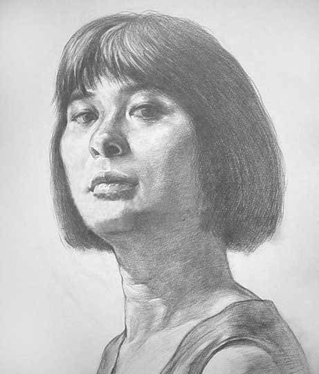 这幅作品头微仰,要特别注意鼻子的结构与透视关系。鼻孔要画得透气。