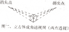5,消失点:就是与画面不平行的成角物体,在透视中伸远到视平线心点两旁的消失点。
