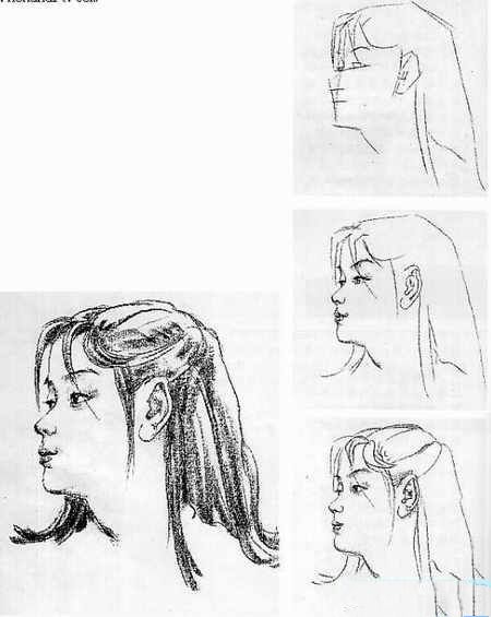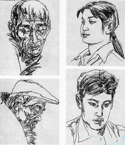 头像速写是初学画者碰到的较难的课题。要在较短的时间内,很快画出一个人的头像,并能画得像,这需要有比较扎实的基本功。画好头像速写首先要对头部的比例、结构关系有较好的掌握,然后抓住头像特征。头像特征体现在如下几方面:五官的特征、头形的特征、五官的组合关系及其在头部所处的位置。头像速写一般采用以线为主,稍画些明暗的表现形式。线条力求简练生动,给人以有生气的感觉。