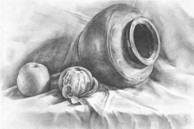 3:进一步深入刻画,注意不同质感的线条表现及明暗层次变化,判断出最重的色调(如罐口)