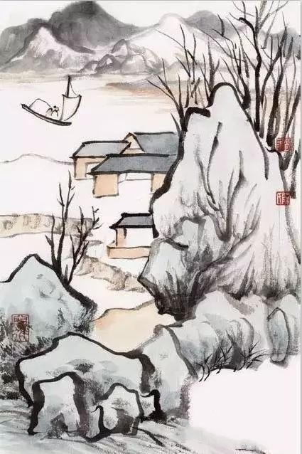 7、浅绛山水,在水墨勾勒皴染的基础上,敷设以赭石、花青为主色的淡彩山水画。浅绛山水画法特点是素雅清淡,明快透澈。【更多绘画艺术技巧,】