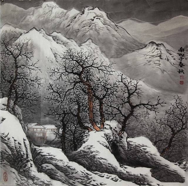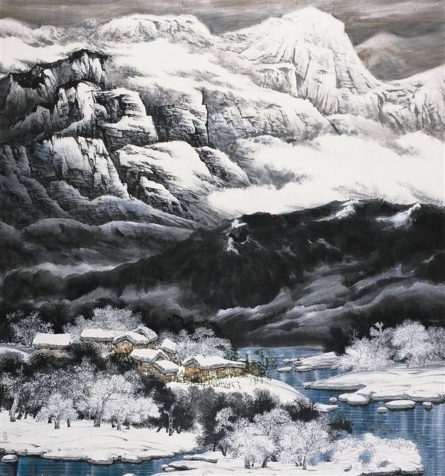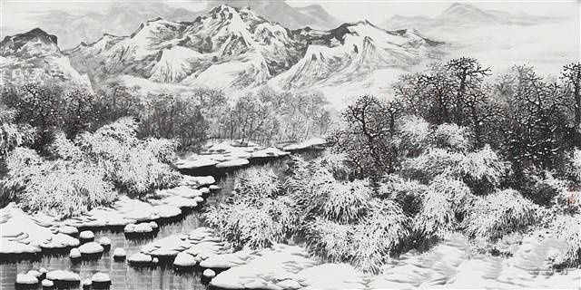 冰雪山水画是讲笔墨的,没有传统的文人画基础是画不好的,一幅好的冰雪山水画,在点划披离间是闪烁着文人画笔墨精神的。