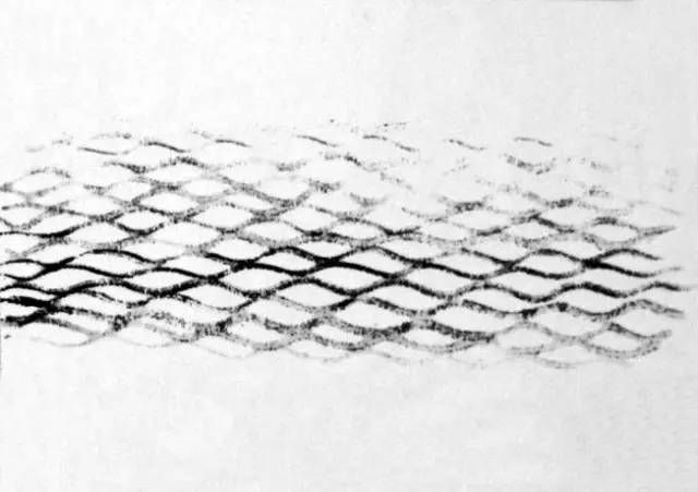 画波纹,多以硬毫蘸淡墨画鱼鳞纹或网中纹。这两种线纹都以中锋行笔,前者从左到右用弧线勾写,后者用下弧线勾写,更为生动。这两种勾法的表现特征都是以精整的短线组合成络纹状,在面积上形成匀中有虚实的韵致感。近水波线实、弧度大,远水波线虚、弧度小直至消失。在波纹面积上,适当以空白断开,构成主次呼应、对比。待墨迹干后,用淡色从整体关系上,概略地染出波光水色。