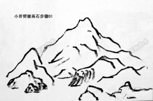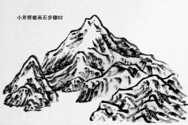 小斧劈与大斧劈相似,以较小的笔迹,表现山石的细致结构。小斧劈能体现出山势峻瘦削利、古朴遒劲的气质。