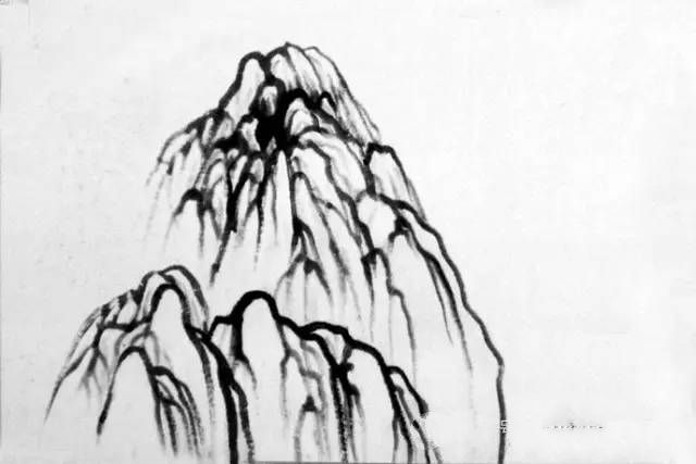 步骤03:继续勾画出远处的山石轮廓。画山石常用局部扩展法,即画好一个局部,然后进行扩展。↓↓↓