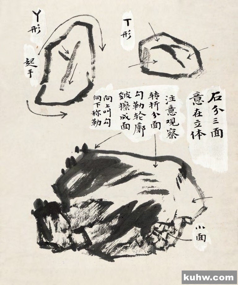 初学者学国画很多知识是必须学习的,例如石分三面、树分五枝、山石皴法、用墨用色等。当你掌握了这些基础知识后,还需要反复的临摹学习,很多初学者觉得知道就好,没必要临摹,其实国画知识都是在临摹过程中学习领悟到的。