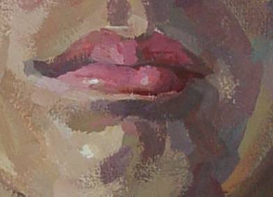 3 首先要注意嘴周围的造型,上下嘴唇一起画,嘴的合缝处是一根重要的线。一般下唇比上唇厚。注意不要把嘴唇的颜色画得太红。