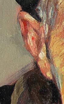 耳朵一般呈有节奏的盘曲状。一般画耳朵容易出现的问题是把耳朵的位置放得太前。耳朵的色彩稍微有一点偏暖。也要注意耳孔的色彩一般是较暖的深色。