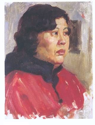 这幅红衣的女肖像人物造型准确,神态自然生动,五官结构的刻画也较充分,画面的色彩关系变化协调且微妙,衣服的用笔也轻松随意,是一幅较好的作品。