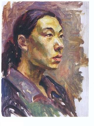 刘佳画油画用色沉稳,用笔泼辣。她的绘画步骤也按部就班,所以一般很少画失败。她在画这幅油画头像时,先用偏暖的赭棕色调将对象如画素描似的找出对象的形体结构,然后再铺上亮部的色彩。铺完对象大的色彩关系后,再找局部的微妙变化,再添加或冷或暖的变化,使画面色彩丰富。