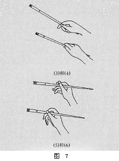 ⑤这种持笔法,特别适合精致的细部处理,手指捏住画笔前端接近金箍处。在使用细小的貂毛画笔刻画细部时采用此法。