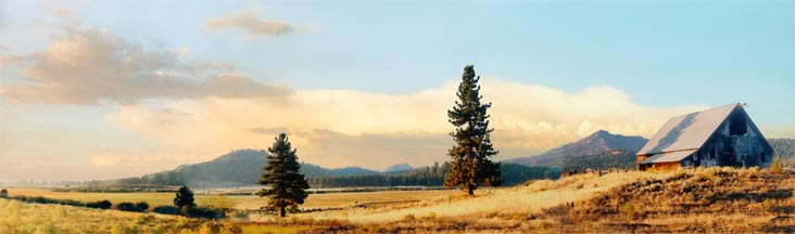 First I scanned the snapshots on a flatbed scanner and created a composite of them using Adobe Photoshop 7. While I was in Photoshop, I removed the distracting highway, telephone pole, road signs and real estate sign using mostly the clone tool, healing brush, and patch tool. I also enhanced the colors a little. Once I had done that, I began to realize that the sky was too boring as you can tell by the next image.