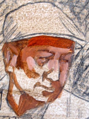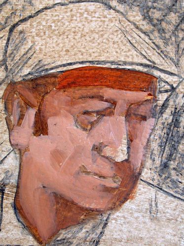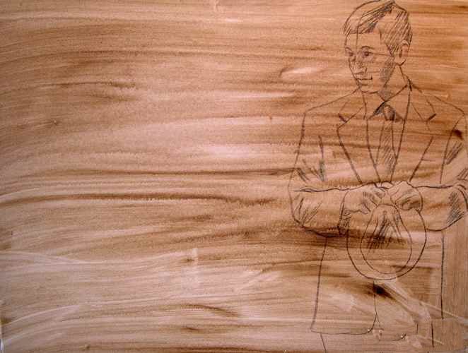我先画一个大刷子(通常一个或两英寸)。开始我开始galkyd中型和深褐色的混合物。的一些葡萄树炭混合的橙褐色深褐色并创建一些很酷的底层色棕色。