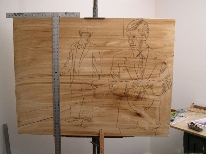 这幅画需要大约一天为我的工作。有时我可以开始绘画,但通常我喜欢让坐着工作在另一个图纸,这样我就可以生活,回到查看问题。有时我会让绘图画布上坐一两个星期,回来我油漆之前,并且做一些修改。在这种情况下,即使我复制了缩略图的最初想法,甚至在画布上画了出来,我退出了图纸后我觉得作文是虚弱。似乎过于分散,环境对我来说是不够有趣。我把画架上的形象,又开始了一个小广场上面板。我喜欢的成分更多。