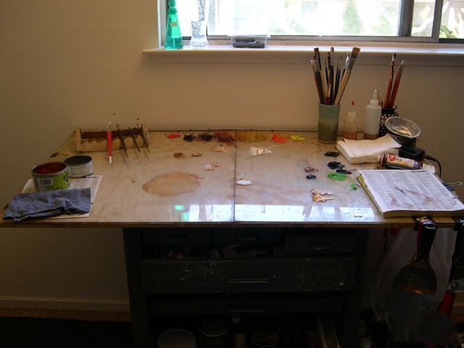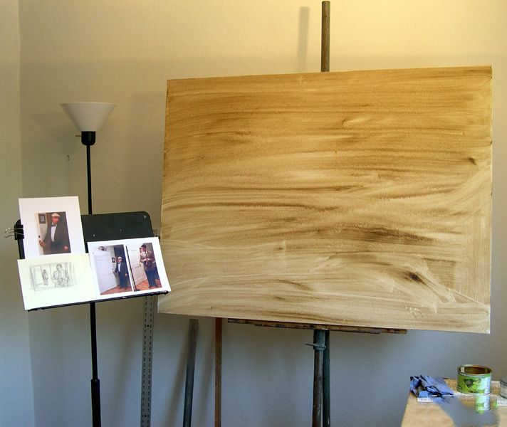 我开始我的画作润湿画布喷雾瓶的水,然后用抹布和塑身画布烧棕土丙烯酸涂料。萨金特和其他画家如鲁本斯始于健美的画布上,所以我不认为。健美的画布上给了我一个中立的语气,让我开始思考价值结构。这大约需要半小时干如果我设置一个球迷。这干后,我开始画。我和参考材料保持音乐站左边我的画架和老车滚动工具板和玻璃表作为我的调色板。我曾经试图描绘“ala prima”或湿到湿下没有任何画画就像卡拉瓦乔,但在过去的几年中,我意识到我不是卡拉瓦乔。我也意识到我需要在我的画一点,这将释放我担心当我绘画。我找到了一个完美的方法。Wyeths Andrew惠氏在“三代”描述了他父亲北卡罗来纳州惠氏始于一个完整的绘画在葡萄树下木炭。这木炭获准抬起到油漆涂料和提供一些价值。