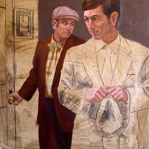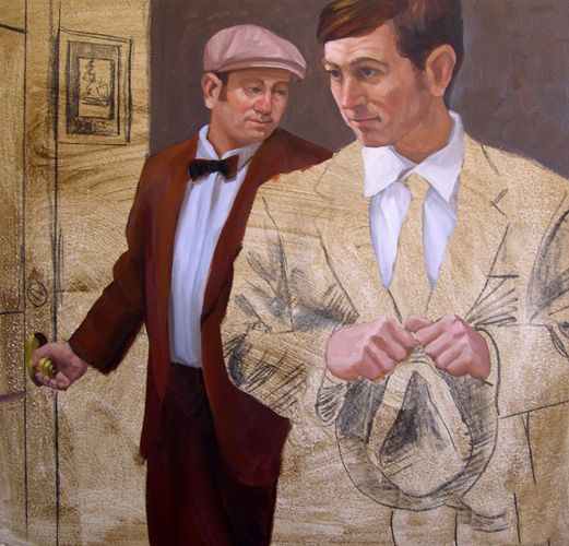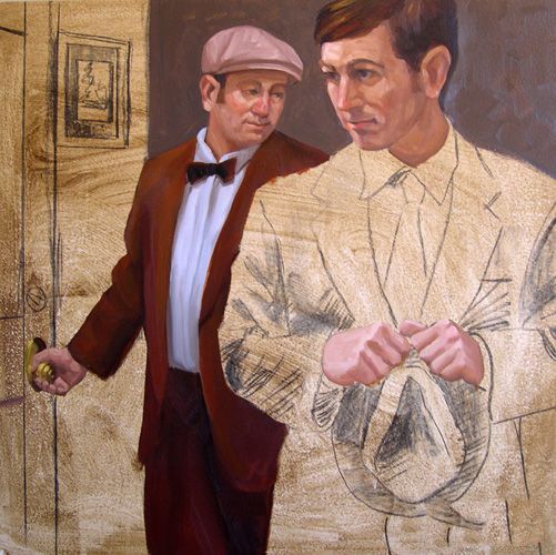 工作后两个数字在某种扩展我穿梭在整个地区绘画。有时我将抓住一些背景或布料的颜色,把它的一些地区面临的手和头发。