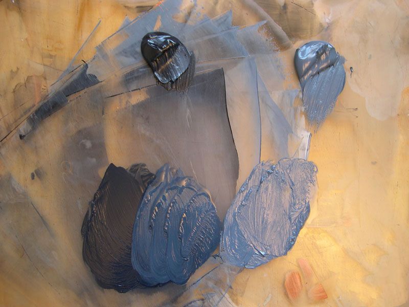 图的衣服我认为的布料一样,刷的肤色。在这个例子中,我混合两个主要批次的灰蓝色。深色的音调是佩恩的灰色的,黑色、白色和烧棕土。较轻的音调是类似的混合物具有更高比例的蓝色和白色光谱因为这是画在北光我将想要衣服突出了冷却器和更蓝。