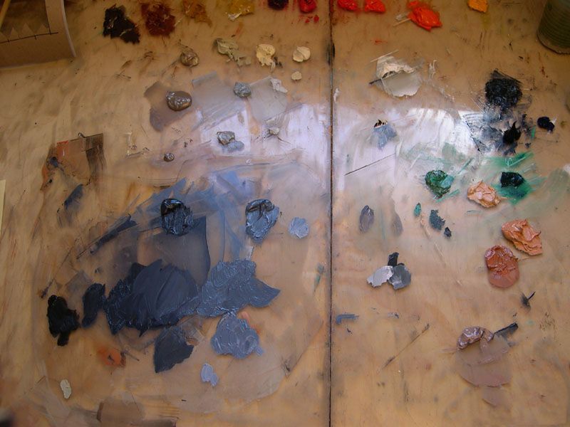 使用12号合成明亮,我在创建一个混合介质的液体清洗/色调最黑暗的基调。我使用不同的媒介油画布。因为我想要油漆的策略更慢,我用直亚麻籽油薄漆。偏暗的衣服是黑色的薄洗混在一起最黑暗的基调。我逐渐添加下一个暗色调的边缘最黑暗的皱纹。轻的中间色调混合批颜色和也变薄一点亚麻籽油。我倾向于回去,混合介质的步骤与较小的合成或貂刷我每个区域工作。在我工作的时候,我炸毁的照片在我的电脑去看布料的特定区域,寻找诸如反射光,核心的阴影。