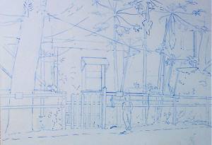 我把画时间是当天晚些时候,看到路上的影子的变化。