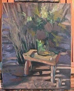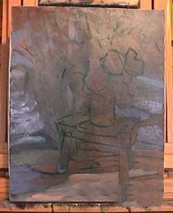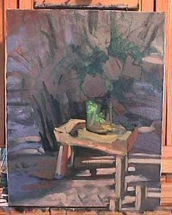 我开始建筑阴影的形状,使用相同的混合thalo和茜素。我也把绿色和白色混合thalo cad的黄色显示玻璃花瓶的水。